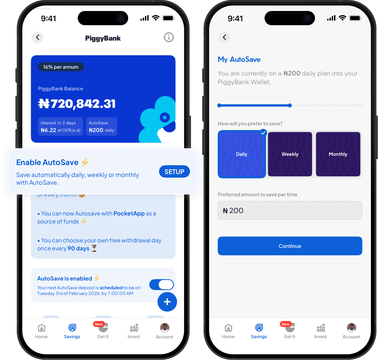 Strict daily, weekly or monthly automated savings.